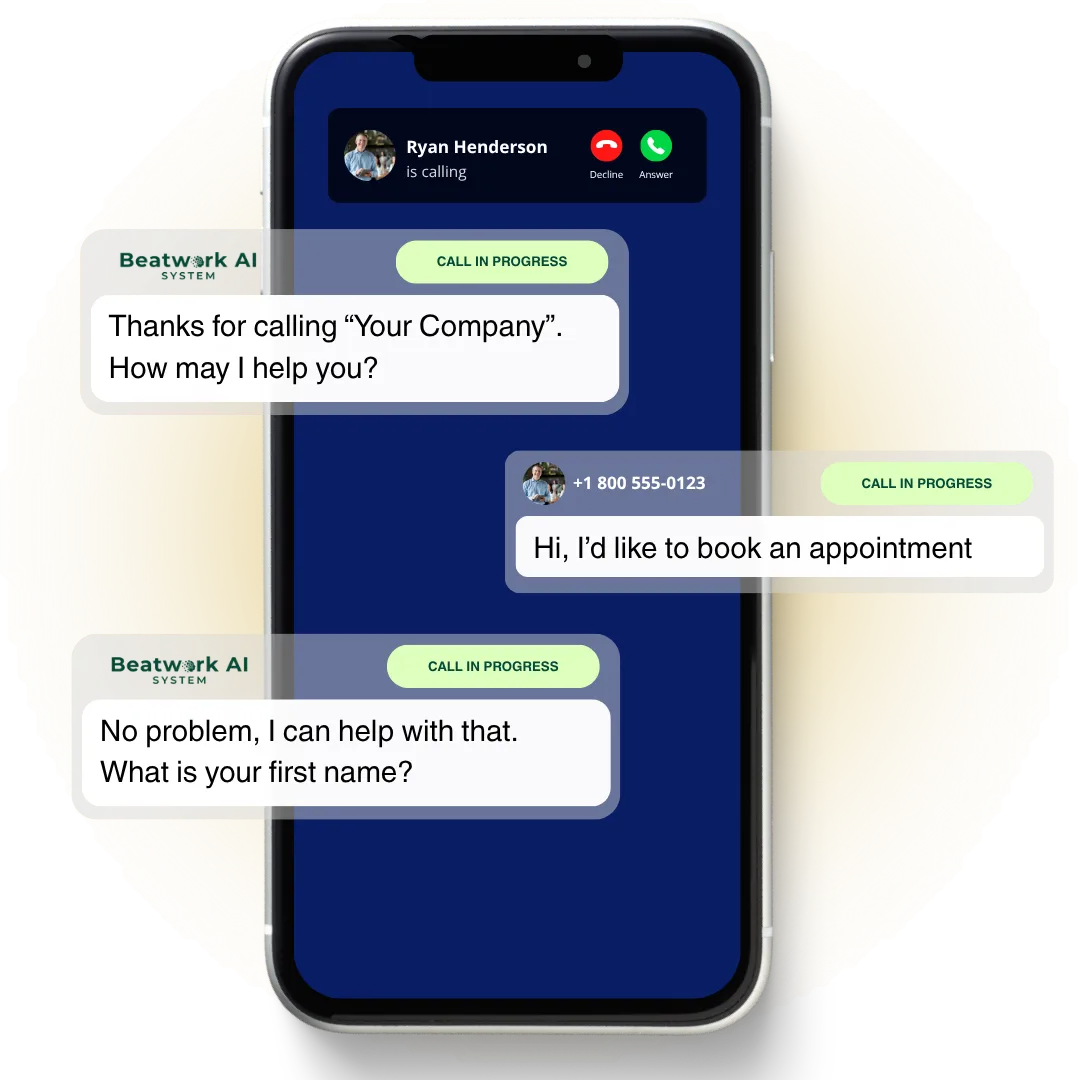 Your 24/7 business assistant. It answers calls, books jobs, manages chats, and handles reviews so you never miss a customer.